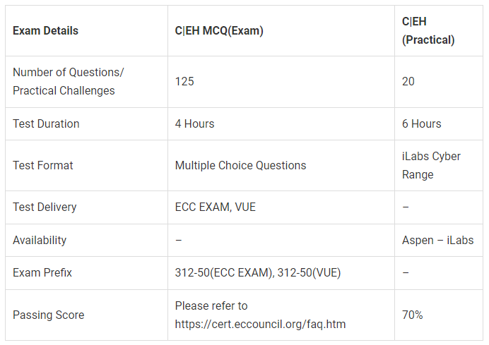 The C|EH exam is a 4-hour exam with 125 multiple-choice questions. This knowledge-based exam will test your skills in Information Security Threats and Attack Vectors, Attack Detection, Attack Prevention, Procedures, Methodologies and more! -